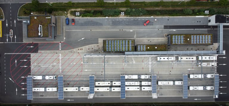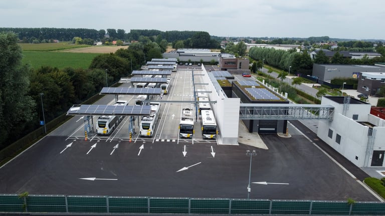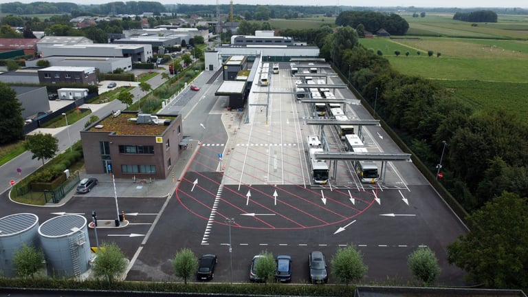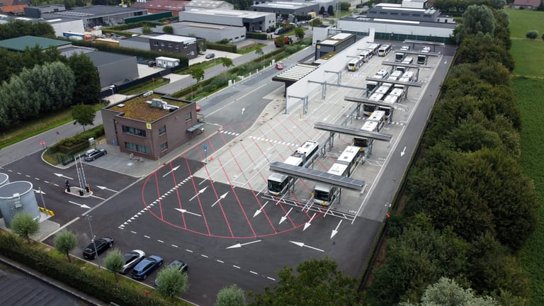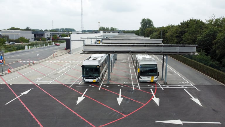 Het in beeld brengen van de stelplaats van De Lijn te Zomergem na de elektrificatie.